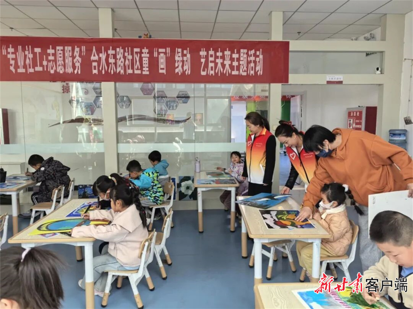 合水东路社区开展“童画绿动 艺启未来”专业社工+志愿服务主题活动。(本文图片由庆阳市委社会工作部提供)