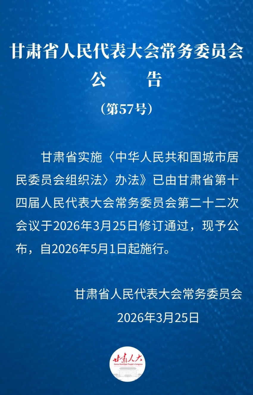 (1992年8月29日甘肃省第七届人民代表大会常务委员会第二十八次会议通过 根据2019年7月25日甘肃省第十三届人民代表大会常务委员会第十一次会议《关于修改<甘肃省实施中华人民共和国城市居民委员会组织法办法><甘肃省实施中华人民共和国村民委员会组织法办法><甘肃省村民委员会选举办法>的决定》修正 2026年3月25日甘肃省第十四届人民代表大会常务委员会第二十二次会议修订)
